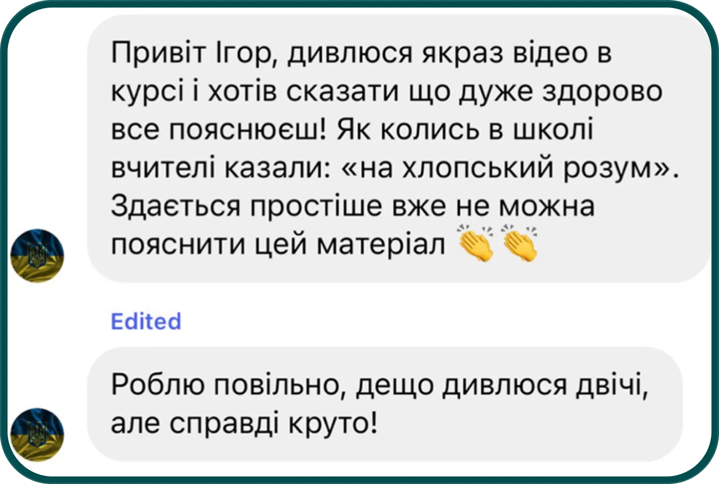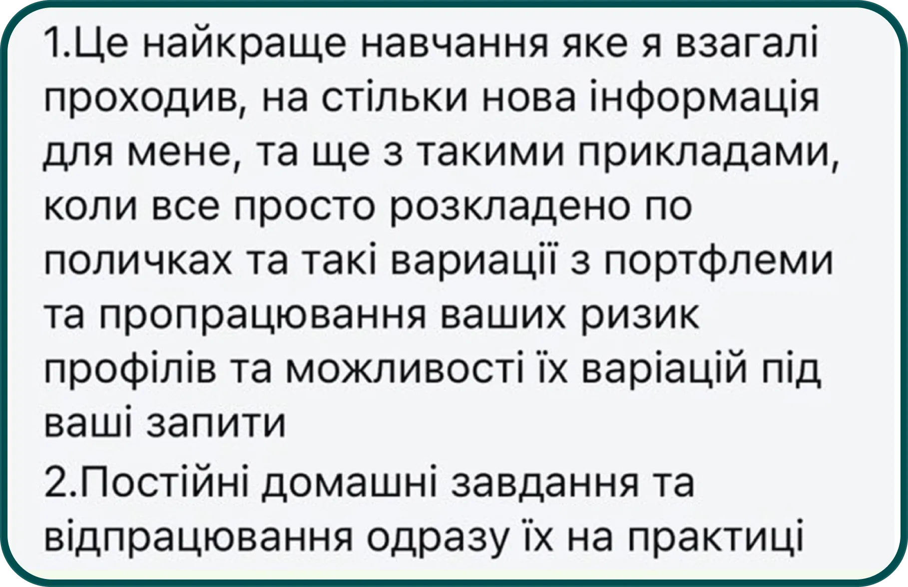 Цей курс – для таких, як ти. Не для фінансових гуру. Для свідомих людей, які прагнуть побудувати безпечне майбутнє, і готові зробити перший крок. Не чекай ідеального моменту. Ідеальний момент – зараз. Капітал не з'являється сам. Він починається з однієї дії. З першого кроку. Чим раніше почнеш – тим більше заробиш. Це математика, а не мотивація. Я пройшов цей шлях. Я знаю, як це працює. І я буду поруч, щоб впоратись було легше.